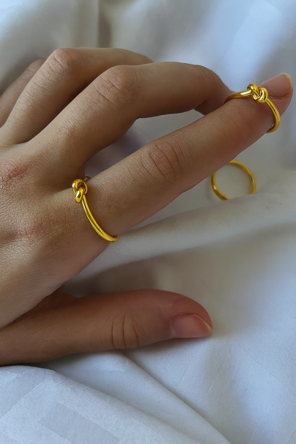 Pierścionek projektowany ręcznie w wosku jubilerskim i odlany ze złota próby 585. Osadzony kaboszon z chalcedonu o charakterystycznym niebiesko-białym użyleniu. Obrączka o masywnej formie z lekko wklęsłym wnętrzem, nienapełnionym w całości srebrem, co zapewnia lepszą cyrkulację powietrza i komfort noszenia.